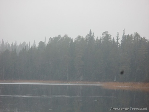 Мы ж сидим себе на бережку. Глядим на лес, озеро, на первый и последний лед, на моросящий дождь, серое небо, вдыхаем запахи будущей весны. И не хорошо нам и не плохо. Просто мы счастливы тайгой.