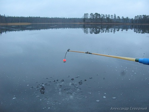Вчера ещё лето, осень и тут вода засыпает, становится сверху, (о, ужас и восторг!) твердой и ты, свободен. Выбирай любой обозримый уголок водоёма. Идёшь, будто по земле и облюбовываешь, где закинуть и половить. И можно расположиться и никто тебя не сдвинет, сдует с места, не помешает. Лови, обследуй, обдумывай, осматривай всё озеро в твоем совладении с морозом. Закидывай с точностью до сантиметра.