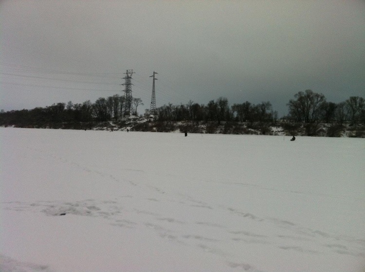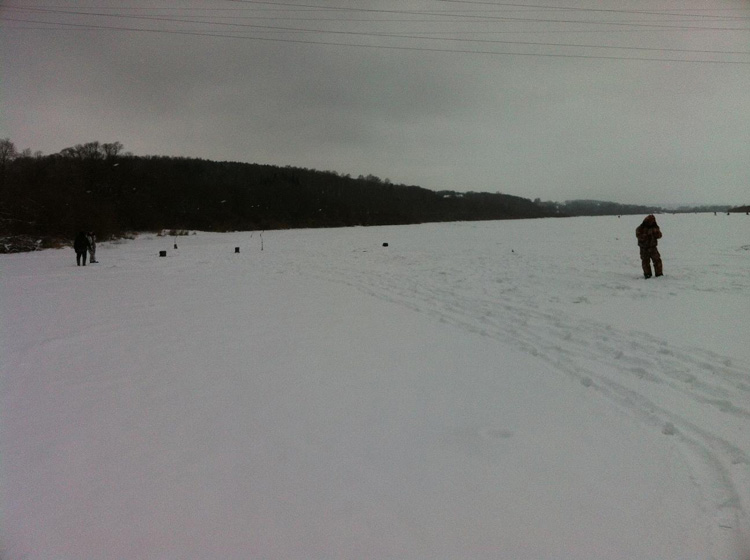 На улице заметно похолодало. Температура около -10, небольшой ветерок, постоянно меняющий направление, мелкий снег. На воде были не первыми. Лещатники уже сидели по руслу, на горизонте пара палаток. У берега почти никого.