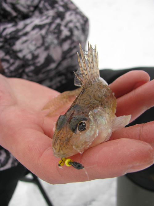 Удалось втроем поймать с десяток ершей и окуней на чертика.