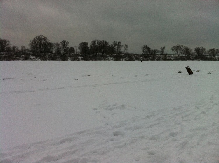 Около часа проходит, два десятка лунок позади, а результата так и нет - рыба закончила питаться, и скоротечный клев прекратился едва начавшись. Ничего, у окского судака такое происходит часто. Ребята разбредаются, Саша решает уйти на пару сотен метров выше по течению, садится на меляк, дабы половить окуня. Даю ему свою окуневую «блеснилку», а сам иду переоснащаться, может смена приманки повлияет на активность судака. Леша садится и уверенно долбит перспективную на его взгляд лунку.