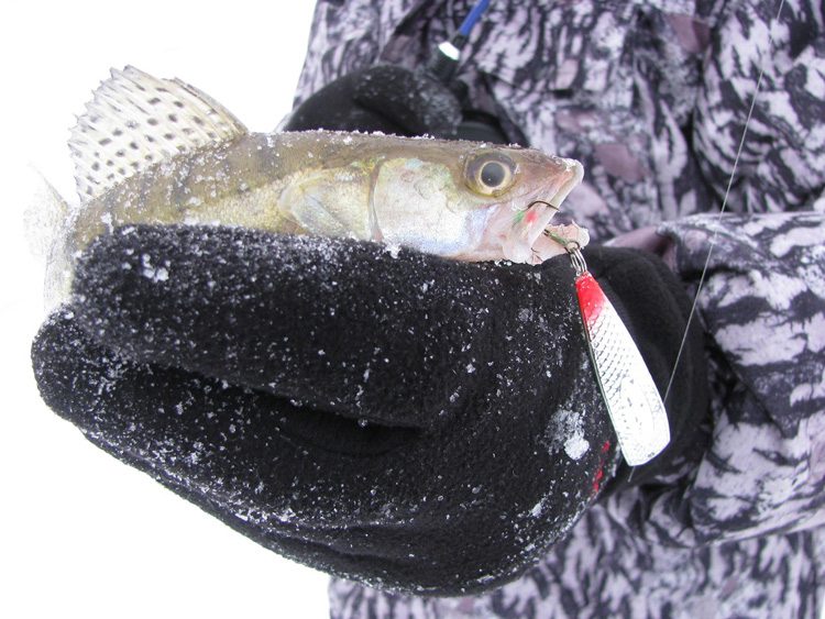 Еще один судак хватает блесенку и сходит прям в лунке…