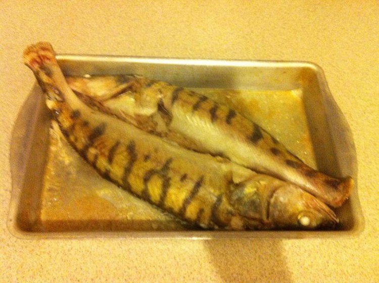 Перед самым уходом Леха принес стратегически важную информацию - судака нашел местный рыболов, оказался он на пятаке у ручья на первой бровке. Глубина 5-7 метров. Уже поздно, поэтому решаем обловить это место завтра. Вечер и ночь прошли в ожидании судаковой рыбалки. Саша жарил небольших окуней, пойманных вместе с ершиками.