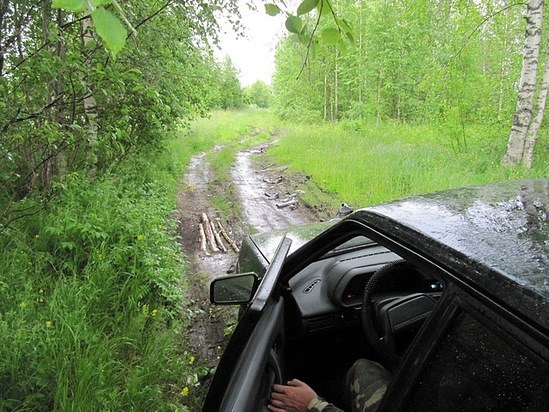 Дороги нам дают уже третье тысячелетие. Сколько еще ждать будем, мож самим начать строить, как римляне. Проехали ровно тридцать метров, стоит легковая бмвэшка в лесу. Еще десять метров и зачесали затылки, стоит ли суваться дальше. Дождь еще зарядил к месту. По прогнозу ливень уж кончиться должен. Видать ошибочка в расчеты вкралась. Всего на пару часиков. Сидим в машине. Капли по крыше лупят, комары в стекла стучатся, духатина. В русском «Жигулёнке» кондеры не положены, мы русские и так богаты, на ф..., нам кондеры.