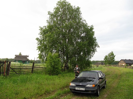 Отъехали обратно. Нашли в начале деревни ель видимый след по полю. Поглядели. Можно рискнуть. Обратно спрятались в машину и под шум дождя, вой комаров и духоту вечера стали рассуждать, что понял Серега и сколько нам его тут ждать.