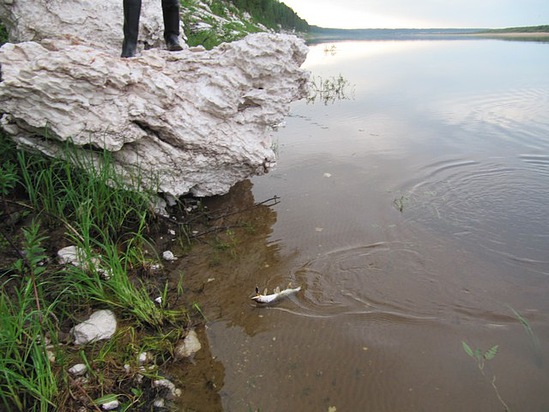 Он же: «Я в лодке посередке речки Юрос рыбачу». Есть у нас обводная река вокруг города, туда все сточные канавы и стоки с кладбища текут, плюсом ТЭЦ отходы сливает. Экология жуткая. Рыба ж живет. Сами удивляемся как.