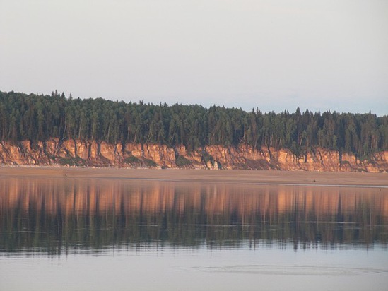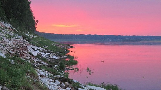 Правый берег позолотило, и он из белого вдруг желто-красным стал
