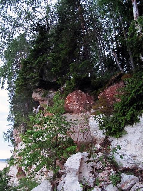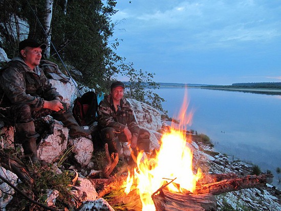 Березы, ели, сосны образовывают над нами навес, белые камни становятся столом, стульями и очагом, река и небо зваными гостями.