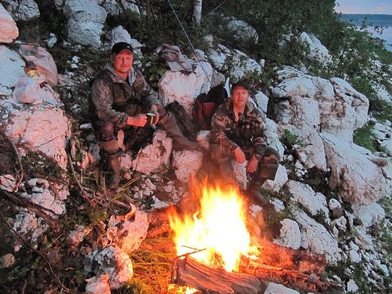 Скромный паёк, взятый лишь на один перекус, быстро заканчивается. Собирались на вечер, остались на утро. Ребята уговорили. И чего я такой сговорчивый. Серега ещё помидором с огурцом заманил, и кусок хлеба с солем у него оказался. Ну, шикарный завтрак будет.