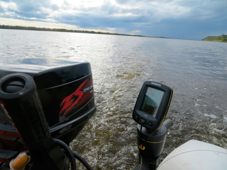 Где-то в глубине трепещутся работящие воблеры. Ищут, играют, приманивают рыбку. Обязательно найдут. Мне лишь верный курс держать, да выбирать правильно подводные бровки и свальчики. От бы прибор придумать, промерял глубины, задал курс, лодка бы сама его держала. Да все равно не получится. Неведомые мощные струи уносят приманки в сторону от курса корабля. Может поэтому, увиденные на экране эхолота монстры, обычно не клюют. И задумываешься, как к ним подход найти. Может поплавок приметный, типа маячка сбрасывать. Мол, на сей полянке кормится рыбина щукастая. И надо лишь точно по курсу пройти. Уж решили смастерить что-либо подобное, потому, как найти повторно точку на ширине реки в километр и больше практически не возможно. Хищница же дальше метра - пару от любимой коряжки в сторону не отрыгнет. Атакует наверняка. Бывают рыбалы, что и в двадцати сантиметрах над ней проведешь, лишь тогда шевельнется. Чуть в стороне иль выше проводишь приманку, и нет долгожданной атаки. Чем больше рыбалишь, тем больше понимаешь, что ничего не знаешь, ни о повадках рыб, ни о местах. Наверно, так и должно, чем больше познаешь, тем большие возможности открываются в познании. Типа тропинка одна, шаг и уже вторая ответвляется, по какой сворачивать? И чуть вперёд и пошло-поехало, и так до бесконечности, ветвятся дорожки поиска, знания, творчества. И чем дальше, тем больше укореняешься в земли Северные :)))