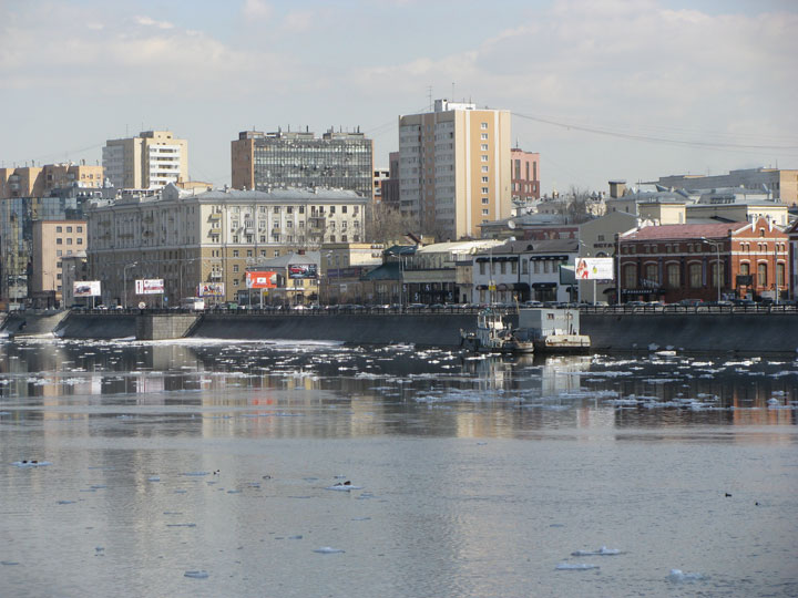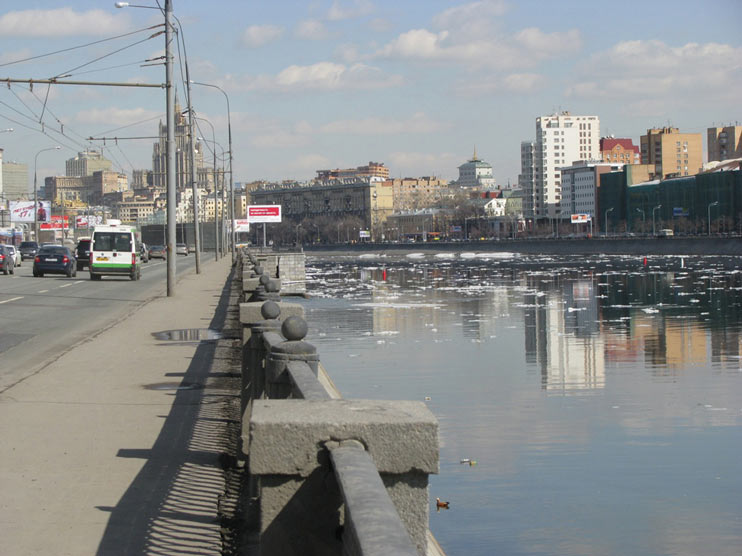 Маршрут решил проложить не со стороны вокзала, а со стороны третьего транспортного кольца, что бы, будущее уставшим, закончить рыбалку рядом с метро. Добираться до начала третьего транспортного кольца мне пришлось на автобусе, проехал пару остановок, затем перешел дорогу к набережной. Огляделся вокруг, посмотрел на воду с высоких парапетов. |