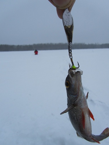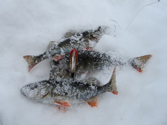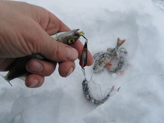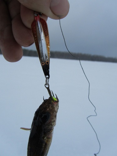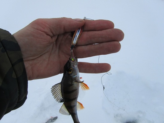 Фото: Блесна зимняя «Блик AQUA» со своими первыми озерными «трофеями».