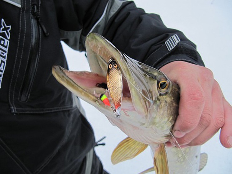 Через десять минут. Помогай. Я ж над ним смеюсь. Пускай, говорю, оторвёт, будет тебе наука. Потом становится жалко блесну. Подбегаю на помощь. Вторая щука за зорьку с одной лунки.