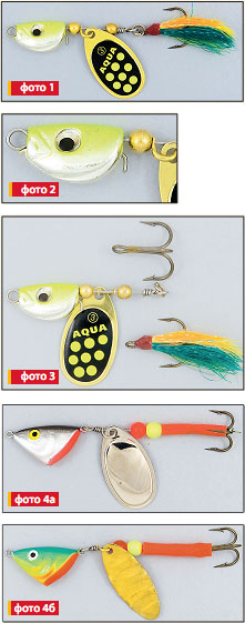 Эти приманки по возможностям проводки и поведению напоминает приманку с фото 1. Лепесток работает и на паузе, когда блесна опускается, а это также дает возможность облавливать все горизонты воды и ловить «ступенькой». Отличительной особенностью данных моделей является то, что облегченное тело всегда стремится принять горизонтальное положение - и в этом случае можно смело экспериментировать с тройниками любого размера и массы, а также различных вариантов подвеса.