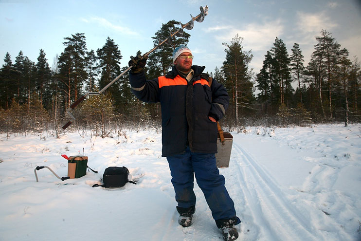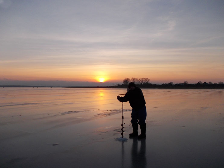 Но настоящих рыбаков разве такие мелочи остановят! Вот мы и на льду, первая лунка просверлена.