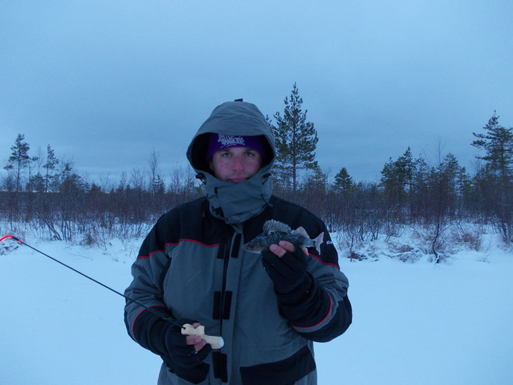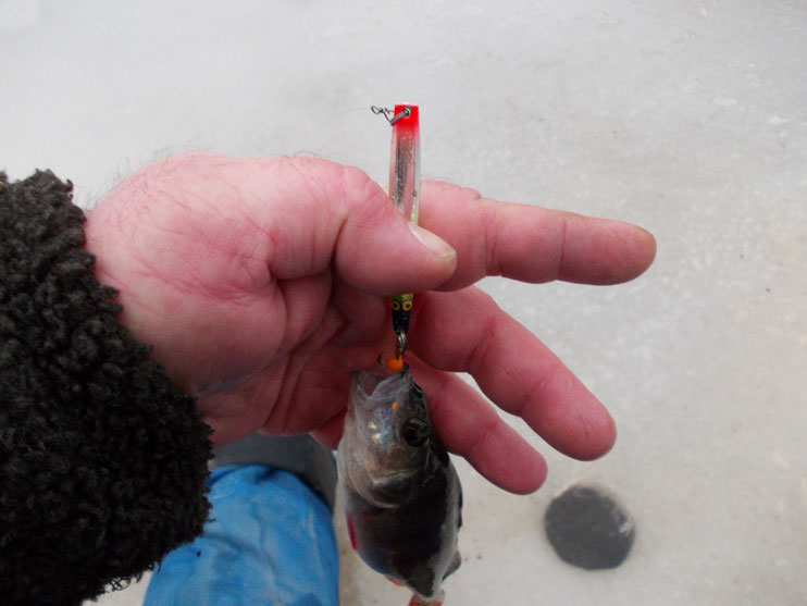 Потом снова - новая лунка, длительное раздразнивание рыбы - очередной окунь.