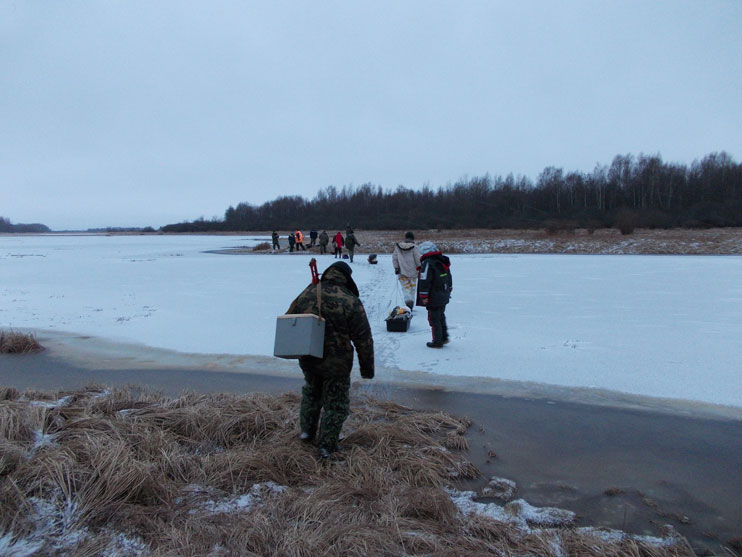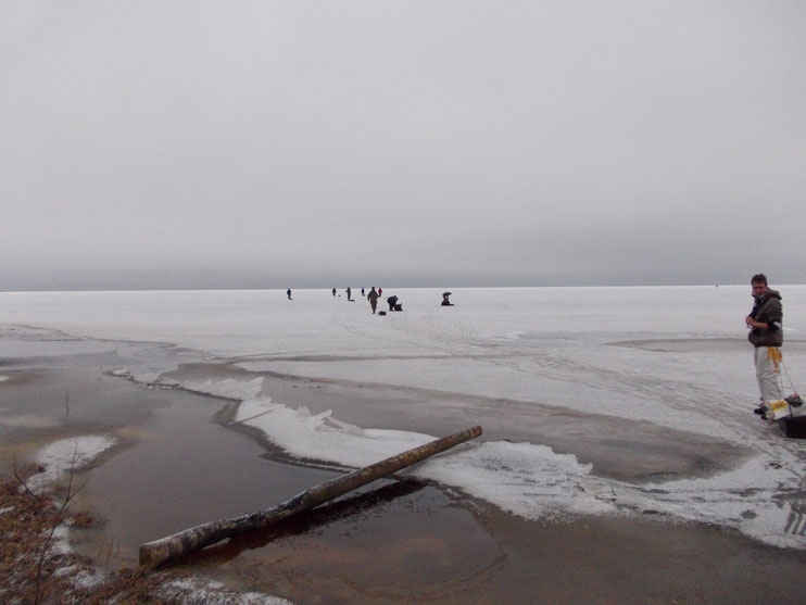 В эти дни как раз морозы кончились, наступила оттепель и выход на ильменский лёд оказался непростым.