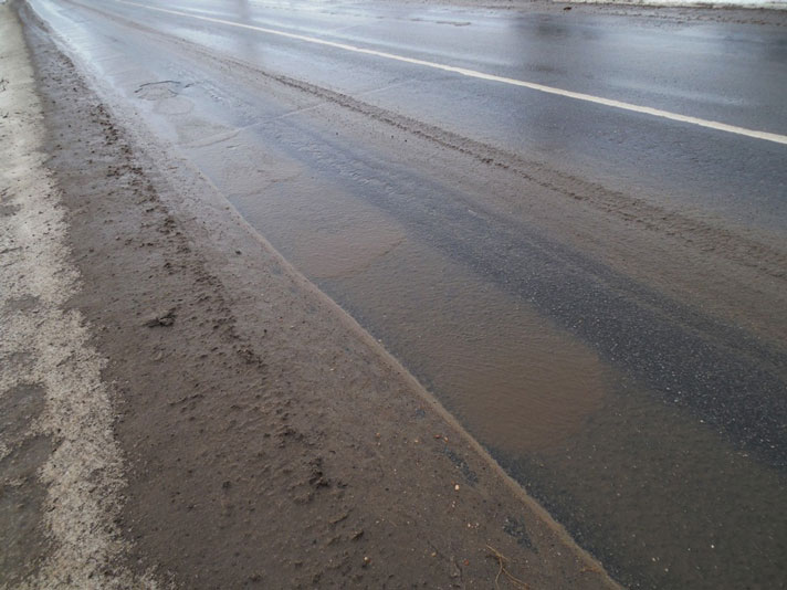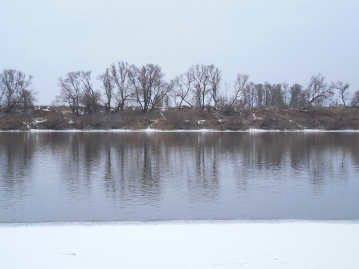 Немного отдохнули, подремали, просушили палатку и с рассветом отправились на Оку. Погода слякотная, по асфальту текут ручьи растаявшего снега, проезжающие машины сбавляли скорость, чтобы не окатить нас грязью.