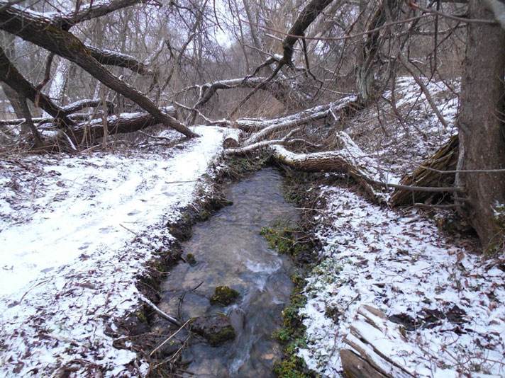 Когда мы преодолели бурелом и незамерзающие ручьи, питающие реку, Тёмины опасения подтвердились: льда на реке всего метров двенадцать, да и то - метра два от закраины лучше не топтать вообще, безопасность важнее всего!
