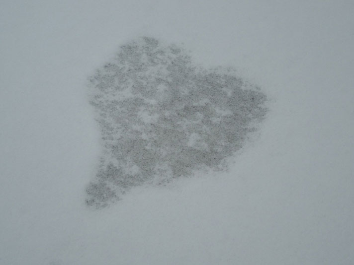 Тёма наотрез отказался заходить на лед, мне пришлось пробуривать каждый метр, начиная от берега, чтобы доказать, что толщина до торосов неизменна – не менее 10 сантиметров. Отвлекшись на неожиданное явление природы, вынимая ледобур из лунки, обломил пластиковый вентиль, вот незадача. А спустя некоторое время обнаружил еще одно сердце вокруг пробуренной лунки.