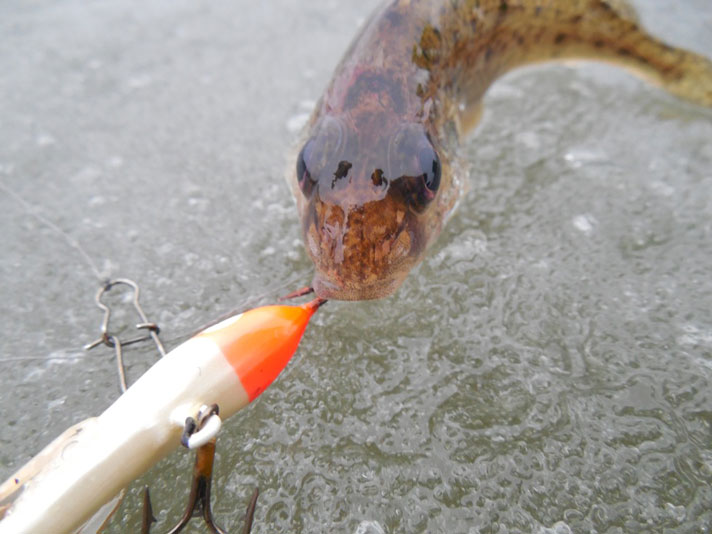 Возвращаюсь к торосам, к границе льда и и воды. Прямо подо мной располагается бровка, скрытая тринадцатью метрами воды и уже не таким гуманным течением, как на шести метрах, меняю балансир на такой же Aqua Hopper, но уже зеленой расцветки. С проводкой не спешил, старался анимировать балансир как можно медленнее, выдерживая паузы до полной остановки анимации. Темп не ускорял, хищник явно неактивен.