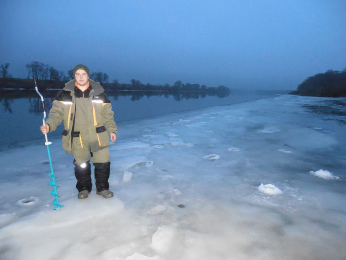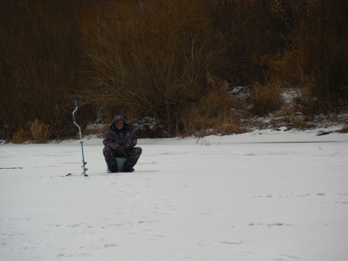 Смещаюсь практически к самому краю воды, Тёма недоверчиво косится на меня, крутя пальцем у виска. Глубина здесь практически та же. Лёд у закраин, несмотря на ту же его толщину, все-таки опасный, течение подмывает, за каких-то полдня почти метра льда как и не бывало.