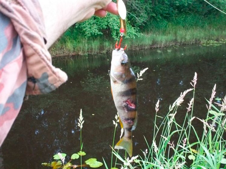 Щучек вертушечка не разбудила, попался лишь небольшой окунёк со страшними ранами на теле - явно выдра рыбёшку прихватывала, да всё-ж упустила. А выдр, как и бобров здесь хватает - места глухие, люди редко появляются, раздолье всякому зверью.