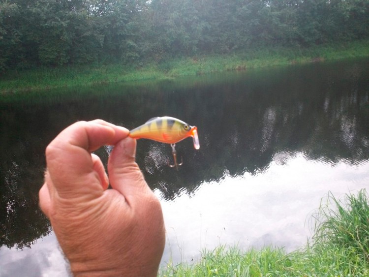 Перебрал несколько воблерочков, проводки разные пробовал, а результат плачевный - лишь небольшой шнурочек на воблерок "Клосс" окунёвой расцветки позарился.