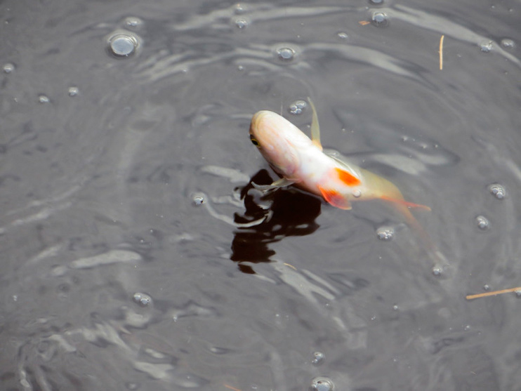 В тазике стайка плавает