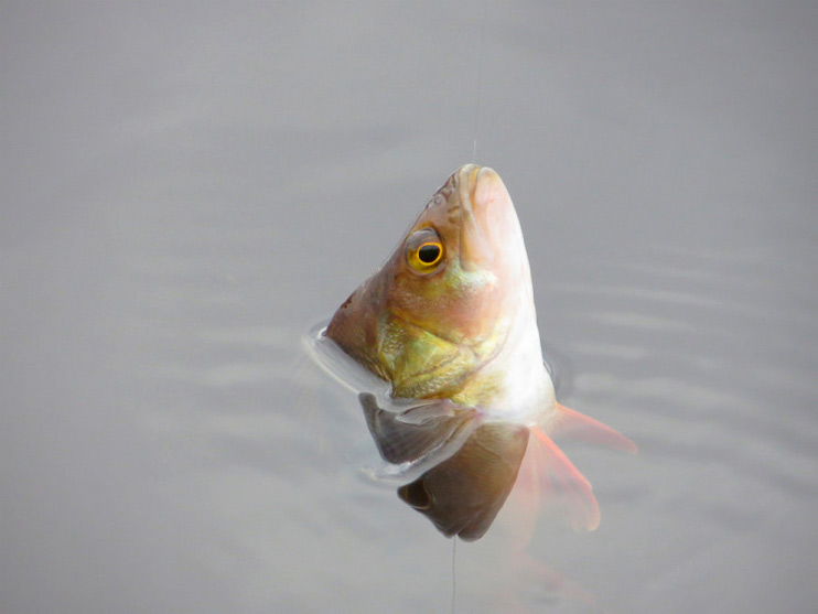 Окунище ложится на бок