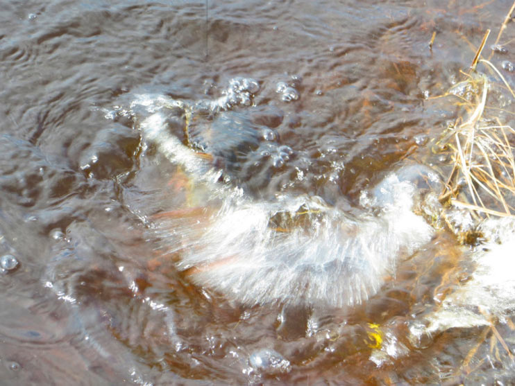 Потом, як обрезало. Просто сижу, наслаждаюсь природой и рыбалкой. Маманя позвонила, на дачу пригласила, побеседовали, сам ж проводку произвожу, телефон головой к плечу прижал. Как же от рыбалки отлынить, никак. Вода разгоняться стала, минут уж двадцать минуло с последней поклёвы. Жасть. Аж опешил. Хорошо так по удилищу прижало, спиннинг в руку передал, так и не понял, то ли увидел и подсек, то ли рука почувствовала и сама подсечку сделала, да спин аж выгнулся, ух зацепился. У самого мандраж, мураши по спине побежали, не уж то кто покрупнее пожаловал. Хват под берегом, вода буруном.