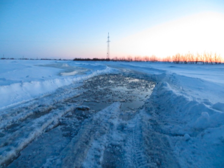 Вода повернула, и мы больше не стали задерживаться и пытать судьбу, да и обратно надо было на коренной берег выезжать, так как вода могла и в других местах ледовую дорогу перелить, колесной технике путь закрыть.