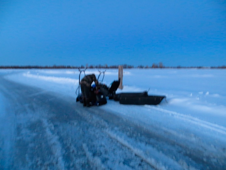 Апрель. Какой он на Северах… Время около шести. Грузовичок не смог нас добросить до деревни Ластолы. Хоть ночью и морозы под двадцать. Днем лихо отдает, и вода сквозь трещины стала заливать лёд.