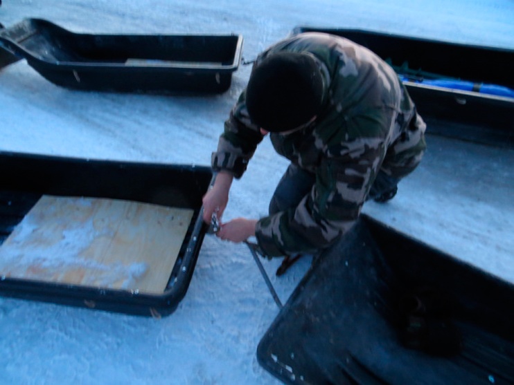 Выгрузились на ровном льду. Заправили «Следопытов».
