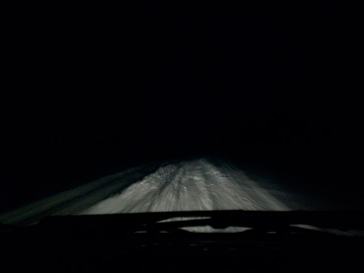 Ещё темно, и фары автомобиля высвечивают лишь колею - даже берегов канала не видно, едем как будто в неизвестность.