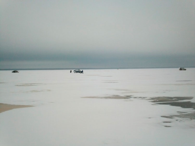 А снегу-то за день намело на льду! Если-б не впереди идушие полноприводные машины - нипочём нам не пробиться к берегу было-бы, застряли-б напрочь!