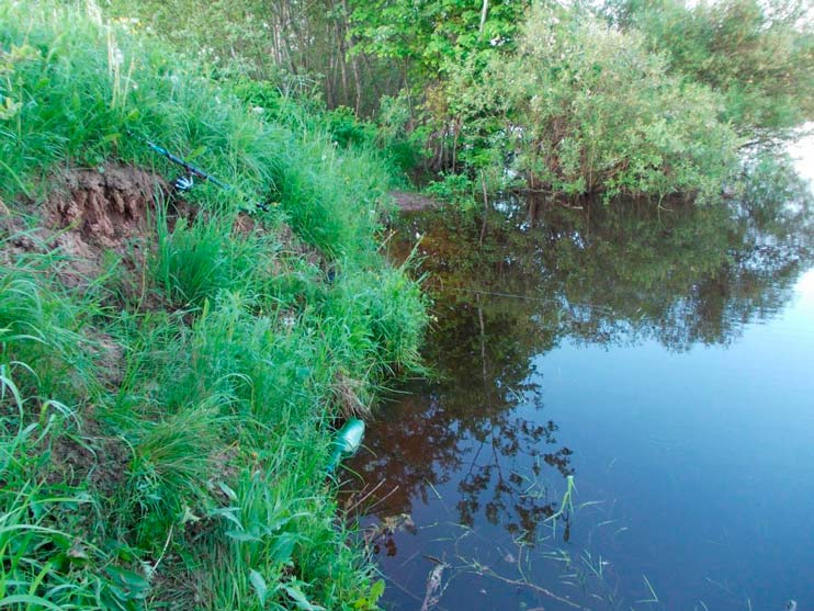 Местечко при такой высокой воде, конечно, не самое удобное для ловли.
