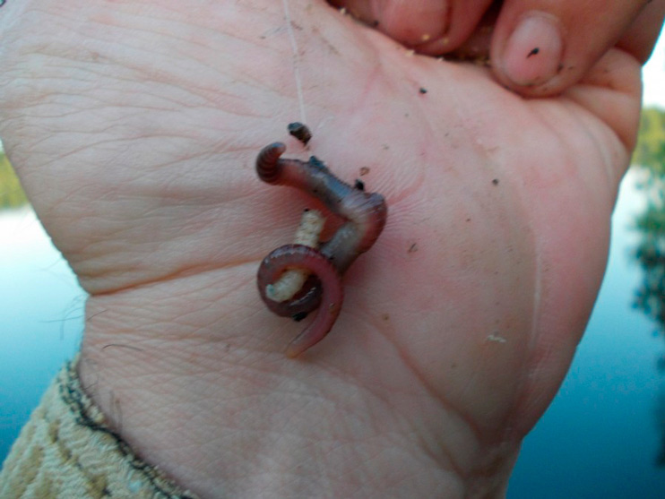 Но пора и к ловле приступать. Удочка разложена, глубина по линии проводки промеряна и выставлена. Насаживаю на крючок "бутерброд" из навозного червячка и опарыша,