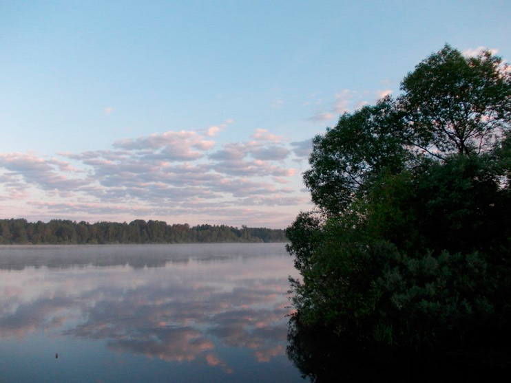 А тем временем за прибрежным леском уже поднимается солнышко.