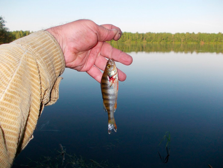 Вытаскиваю и отпускаю подряд десятка три таки вот рыбок. Начинает надоедать. А после поимки наноокунька.