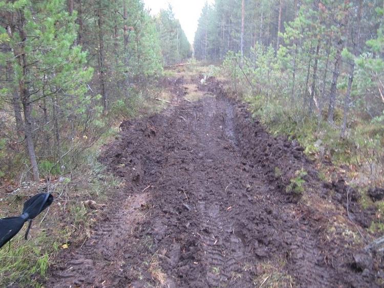 Архангельский ОФФРОуд проводил соревнования, видно следы от навороченной УАЗки. Пару мест колея серьезная, надо ребятам позвонить, чтобы вернули поверхность, как было. Лыжня – есть лыжня.