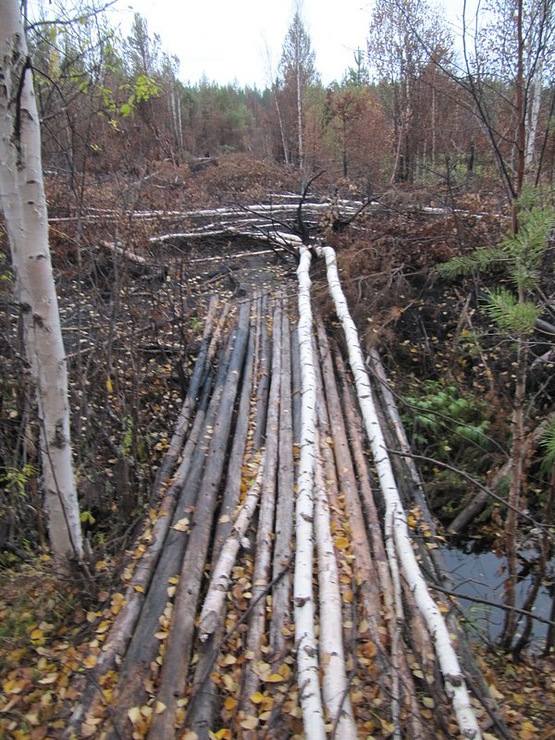 Знакомый с зимы мостик, принялся пожаром, да вовремя кем-то был затушен. Часть лаг сгнила, часть перегорела, требует капитального ремонта.