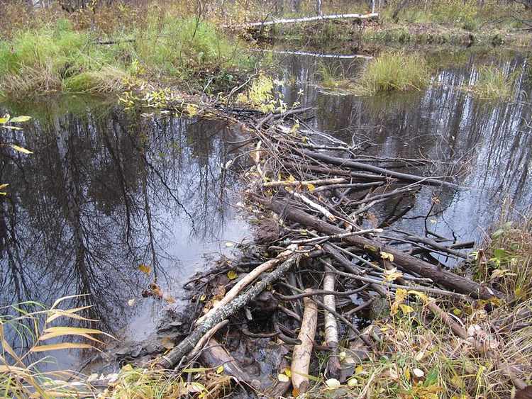 Лихо придумано. Положил ряд жердин, палочки, листья по поверхности плывут и забивают проходы меж жердями, вода поднимается, потом еще ряд положил. Так и плотина строится. В тоже время подмечаю, что бобры использовали донный грунт. Ил, как бы вдавливает напором воды в стенку. Так, именно так, на Кельде плотину и построим у избы. Проверено временем, мин нет!