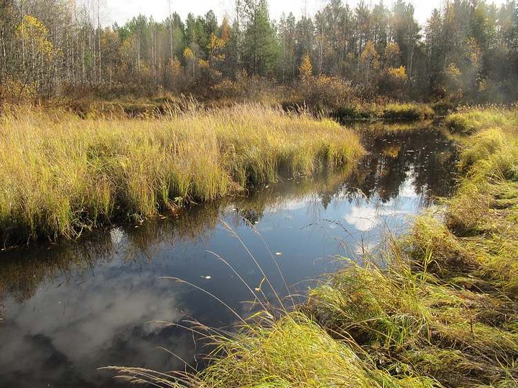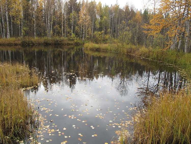 Яда играет красками осень, купает застывшие облака, да жёлтые листья, как кораблики, повинуясь незаметным порывам ветерка, бегут по поверхности.