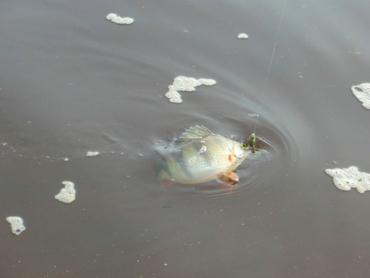Заброс и вновь поклевка. Катушка работает мягко, плавно ведется приманка по дну. Поклевки хорошо чувствуются, и рыбка приятно выводится к берегу