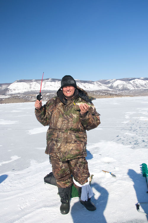 Для начала настроились на ловлю мормышками, я старый мормышечник :) и уже через несколько минут первый окунь, а за ним и сорога была отделена от воды. Сам себя не могу сфотографировать, прошу Юру по позировать :)