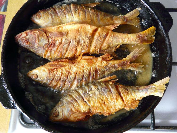 По приезду домой улов был почищен и пожарен