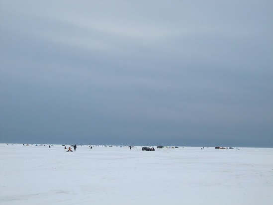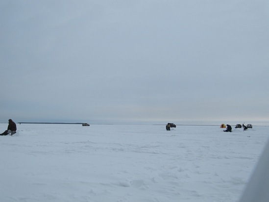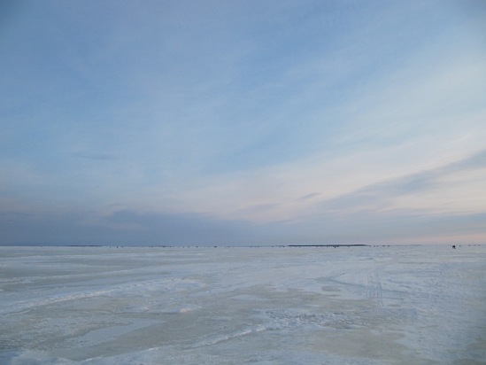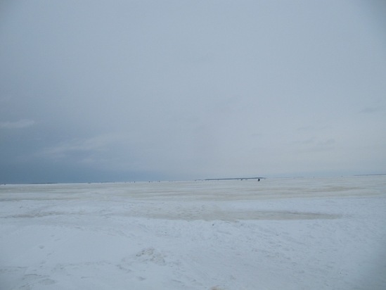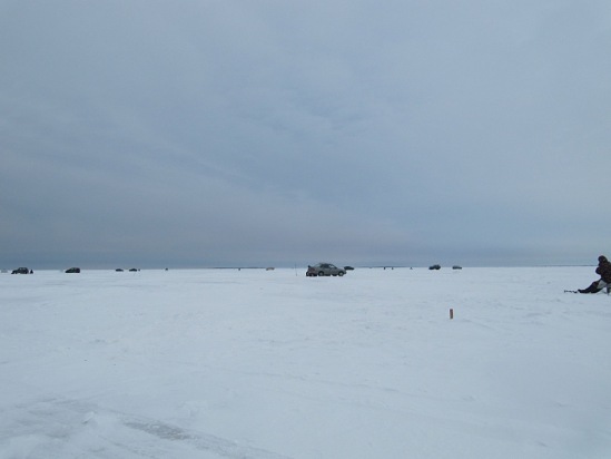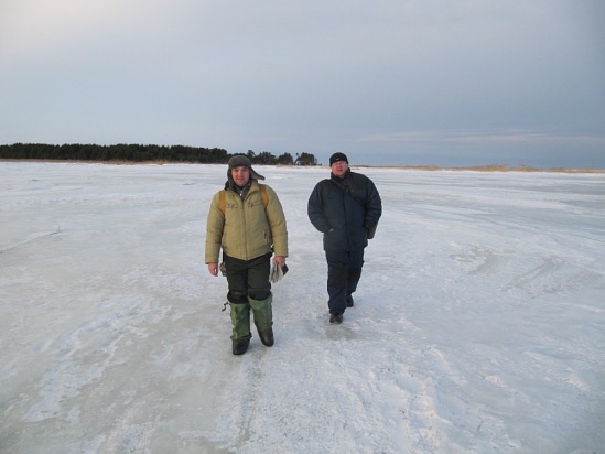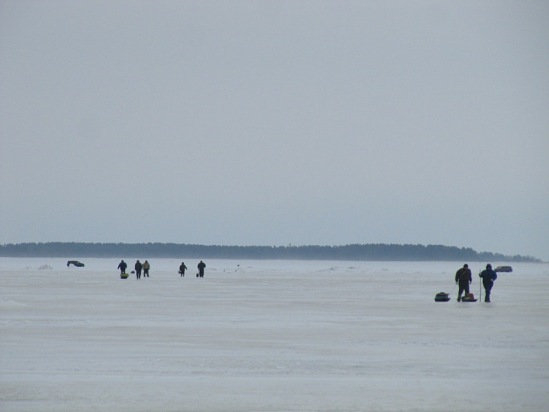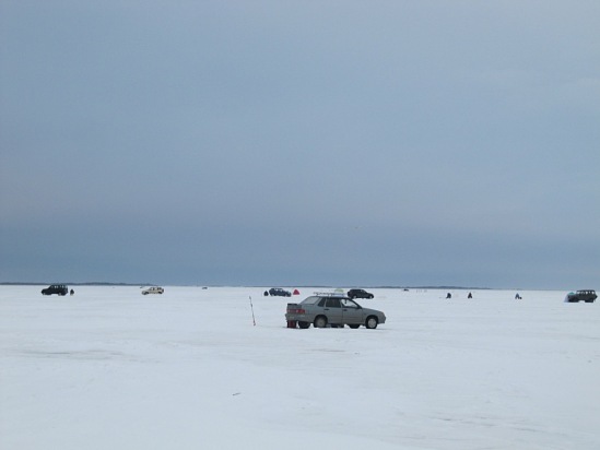Народу на льду много, кто-то прорвался на машинах, мы ж не стали рисковать на нашей «пузотёрке», да и размяться всегда в удовольствие.