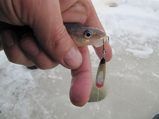 И весьма отменно. Корюшок схватил на «Блика», величины можно сравнить по фотографии