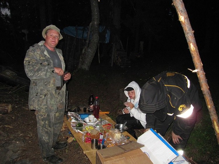 Да и так в дружной веселой компании кушается великолепно. Довольны, что дошли, довольны, что доехали, что стоянка цела и невредима, отсутствие оставленных пару килограммов пряников и вафлей, да телескопической оснащенной поплавочной удочки особо не напрягает. Кому-то впору пришлось и еда, и наша уда. Половят, вернут на место.